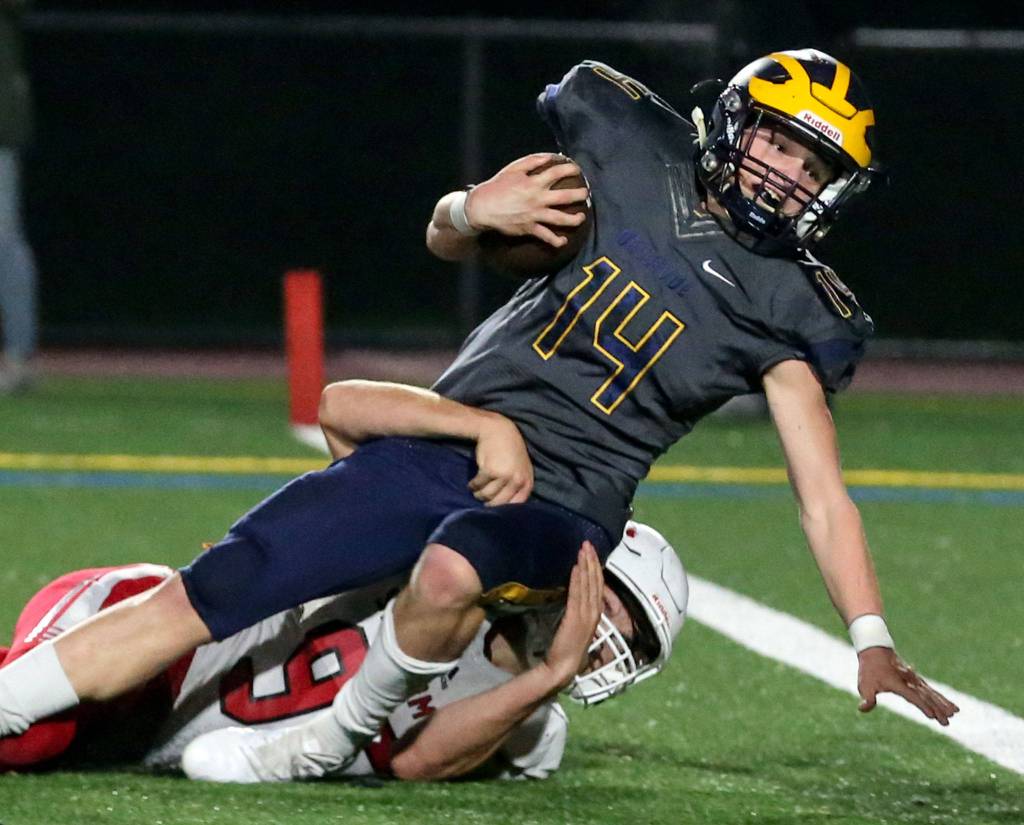 Tayte Conover, Snohomish — The Panthers were playing catch-up nearly all game and needed to attack through the air. Conover stepped up big-time, throwing for 253 yards and touchdown passes to Tyler Massena, Makai Williams and Jacob Brandvold. He also ran for a score.