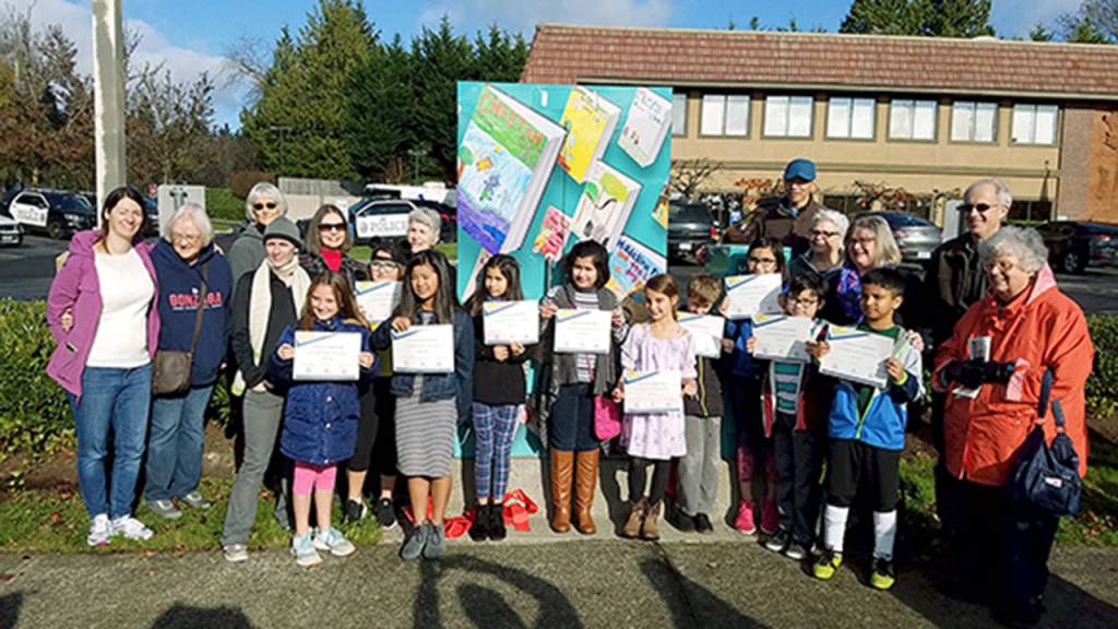 The wrap was a collaboration of the Lynnwood Arts Commission and Friends of the Lynnwood Library. The young artists and readers hailed from Beverly, Cedar Valley, College Place, Hazelwood, Hilltop, Lynndale, Lynnwood, Martha Lake, Meadowdale, Oak Heights and Spruce elementary schools.