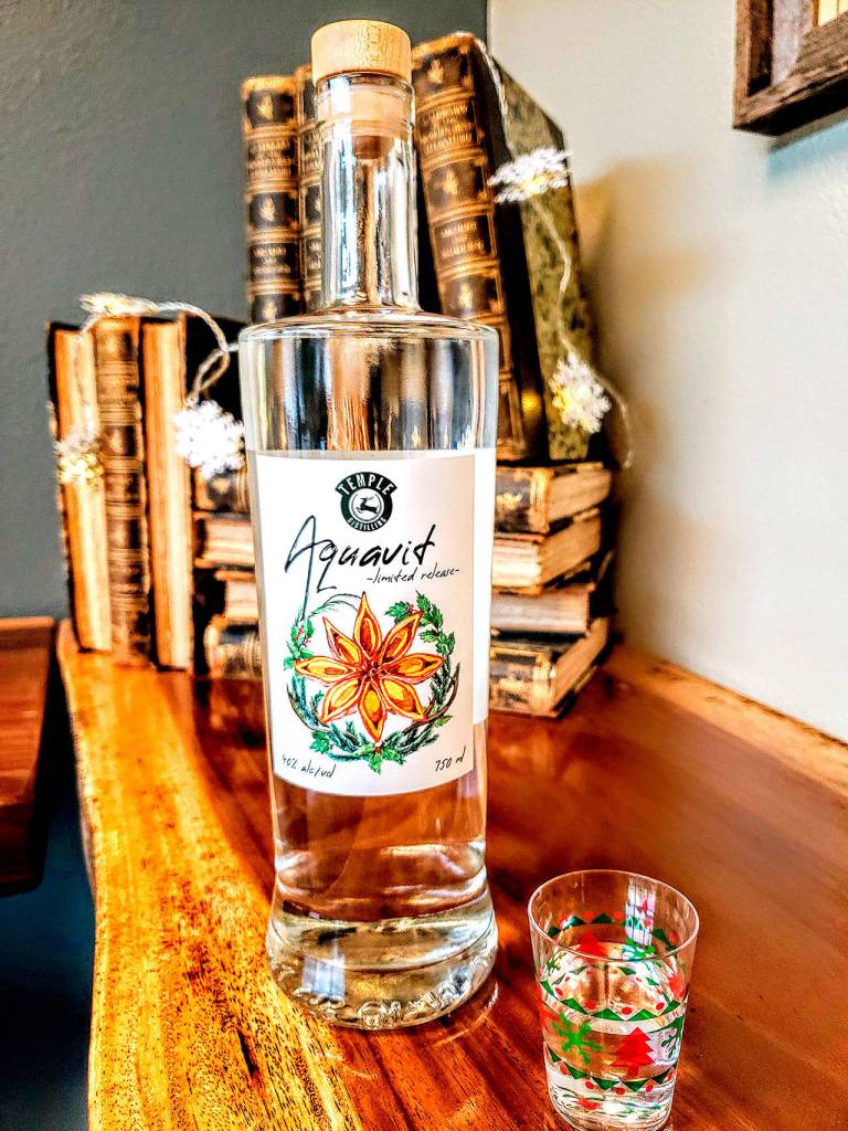 Temple Distilling, owned by husband-and-wife team AJ and Jamie Temple, will host its third anniversary and aquavit release party on Sunday — a day after pouring spirits at the Washington Distillers Festival at McMenamins Anderson School in Bothell.