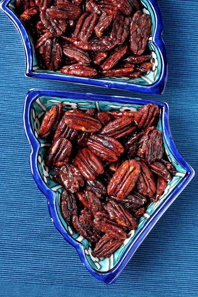 These scrumptious nuts, glazed with maple syrup and seasoned lightly with warming hints of cinnamon and cayenne, are practically effortless to make. They have the seemingly magic power of elevating any number of dishes you might be serving this Thanksgiving and throughout the holiday season.
