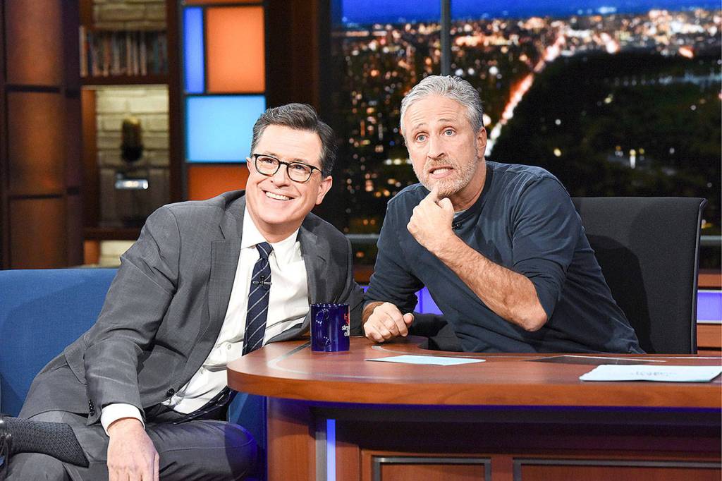 Stephen Colbert and Jon Stewart on “The Late Show.” (Scott Kowalchyk/ CBS)