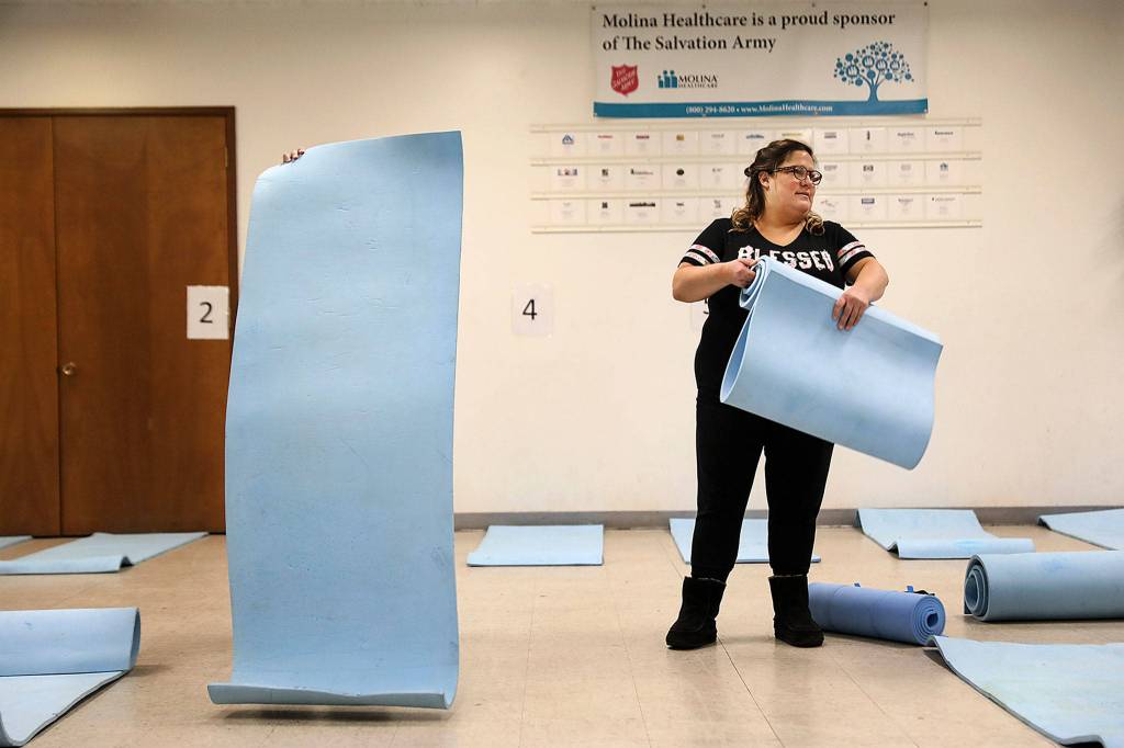 EVERETT — On nights when temperatures dip below freezing, a patchwork of emergency cold weather homeless shelters open across Snohomish County. Inside are badly needed beds, which sometimes amount to a thin mattress on the floor and a blanket.