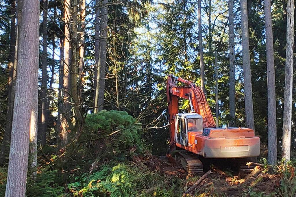 “What a shameful, shameful thing you guys are doing,” Julie Meghji scolded orange-vested workers later that morning, after the excavator trundled into the woods near Picnic Point Elementary School. Men in hardhats and safety vests soon trekked up the same path with chainsaws.