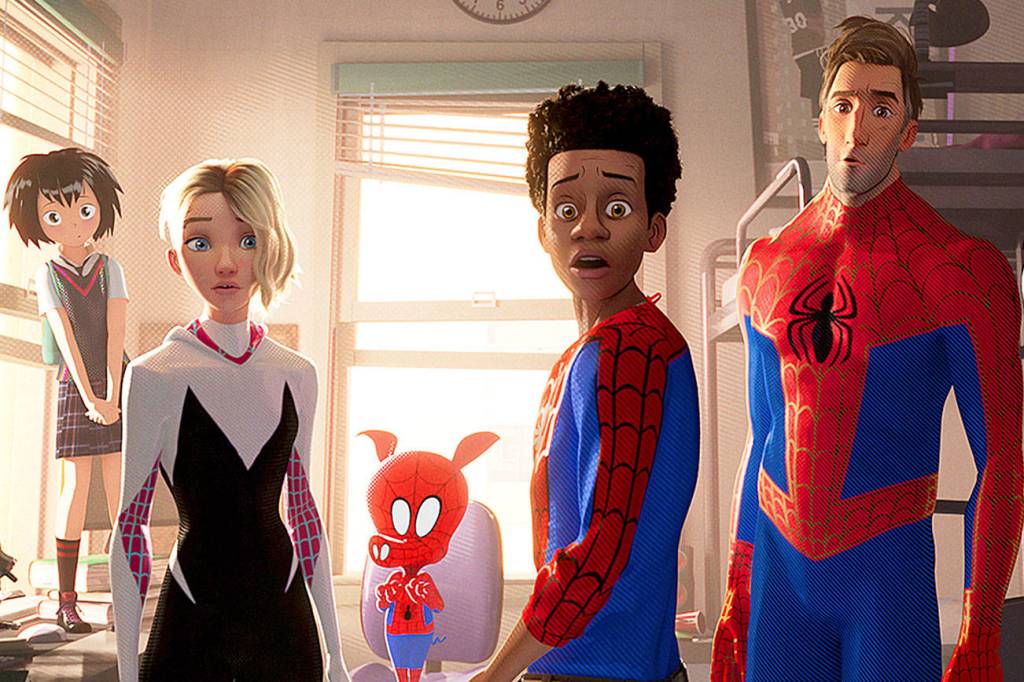 An animated Marvel saga, “Spider-Man: Into the Spider-Verse” tips its hat to the existing Spider-Man movie thread while introducing the idea that multiple universes hold different Spider-Men.