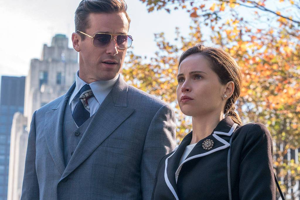 We see Ginsburg’s romance with husband Marty (Armie Hammer, recently the monstrous business mogul in “Sorry to Bother You”), a genuinely complementary relationship keyed to their different personalities: He’s expansive and outgoing, she’s introspective and studious.