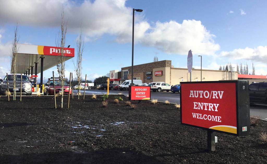 There are three access points to the Pilot Travel Center, including two on Highway 530 and one on Smokey Point Boulevard. Semi-trucks were already making use of the main entrance off the highway that requires them to exit onto the boulevard before doubling back toward I-5.