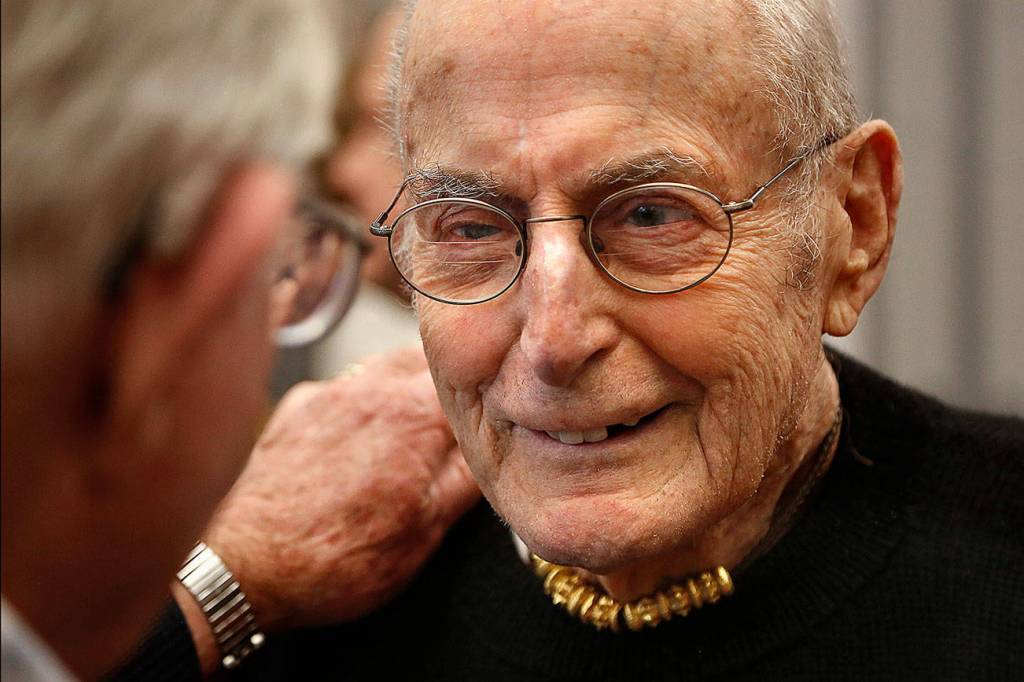 Russell Day was 103 at the 2016 reception for his former student, internationally known artist Chuck Close, at Everett’s Schack Art Center. Day, who taught art at Everett Community College1949-1976, died Monday at age 106.(Dan Bates / The Herald)