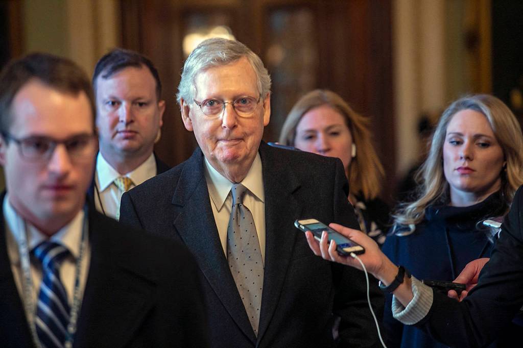 McConnell accused Democrats of preferring “political combat with the president” to resolving the 32-day partial federal shutdown. He said Democrats were prepared to abandon federal workers, migrants and all Americans “just to extend this run of political theatre so they can look like champions of the so-called resistance” against Trump.