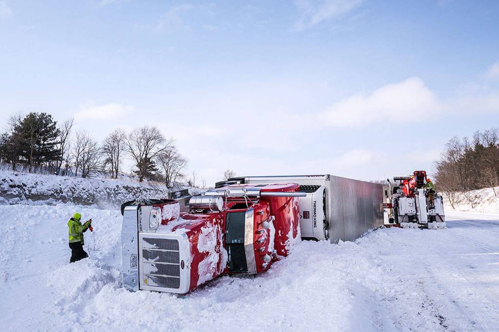 Authorities say a 9-year-old Nebraska boy died in a crash Sunday night along icy Interstate 80 in western Iowa. In eastern North Dakota, officials have issued travel alerts because of blowing snow. The Minnesota State Patrol was responding to scores of spin outs and crashes early Monday in the Twin Cities metro area because of snow-covered and icy roads.