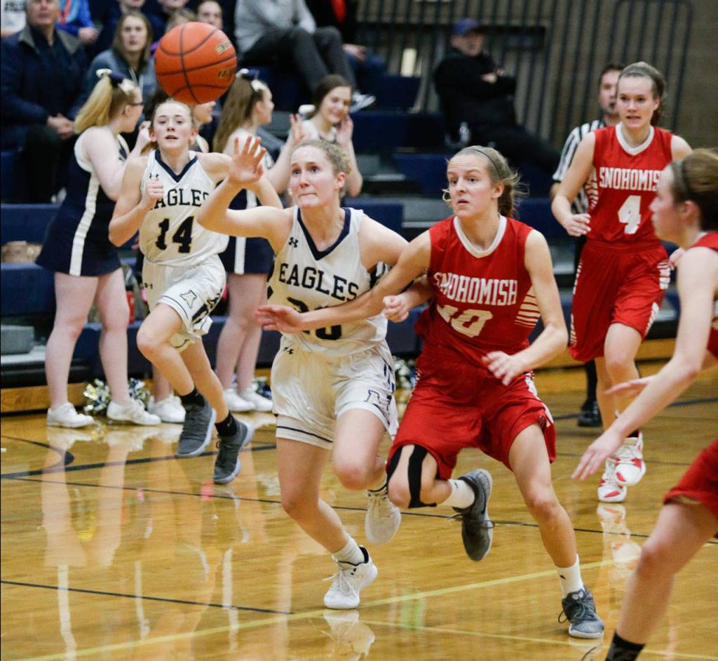 As the Eagles closed the game on a seven-minute scoring drought, Snohomish inched its way back, cutting the deficit to 40-38 on a jumper by Maya DuChesne with 3.4 seconds to play.