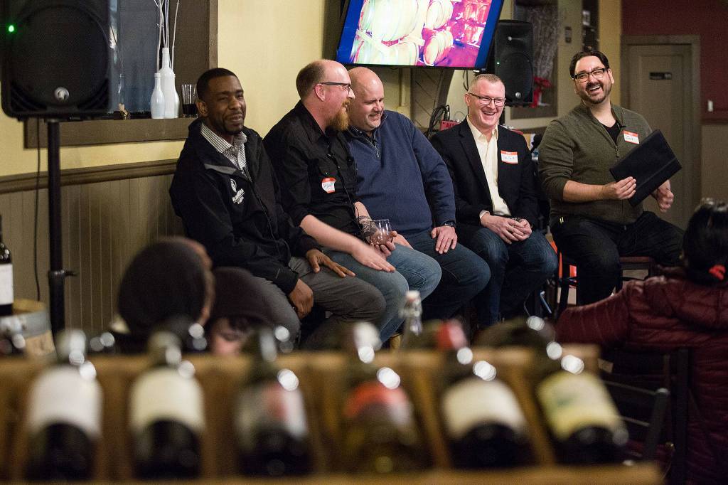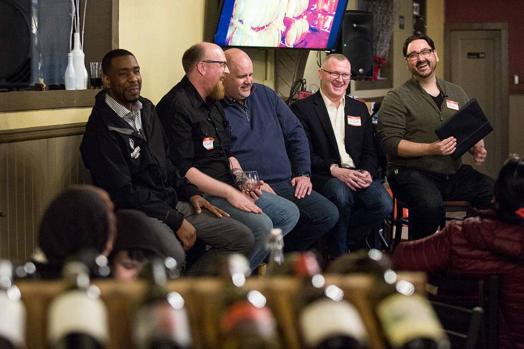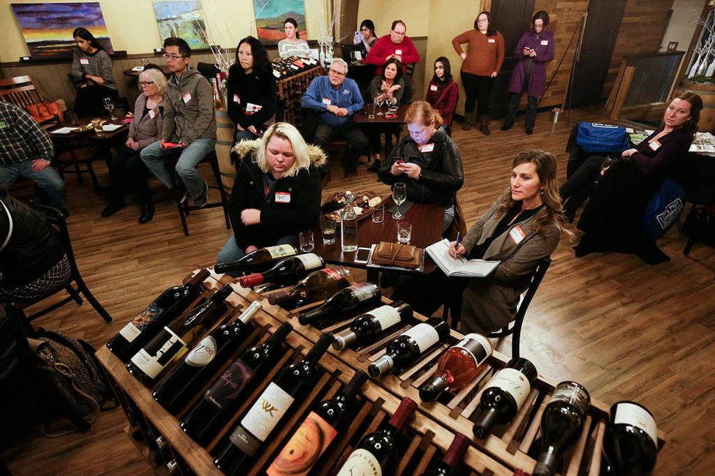 A noisy, happy crowd gathered at the Double Barrel Wine Bar at 108 Avenue A in Snohomish to hear from Zach Zulauf, organizer of Seattle Foodtrepreneurs; Scott Wetzel, head of Arlington-based Fresh Bread Designs; and Darin Leonard, director of OneAccord Capital, among others.
