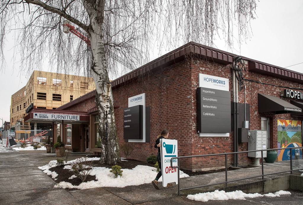 Housing Hope’s supportive model begins with housing, then focuses on life and job skills, training workers in its cafe and landscaping businesses.