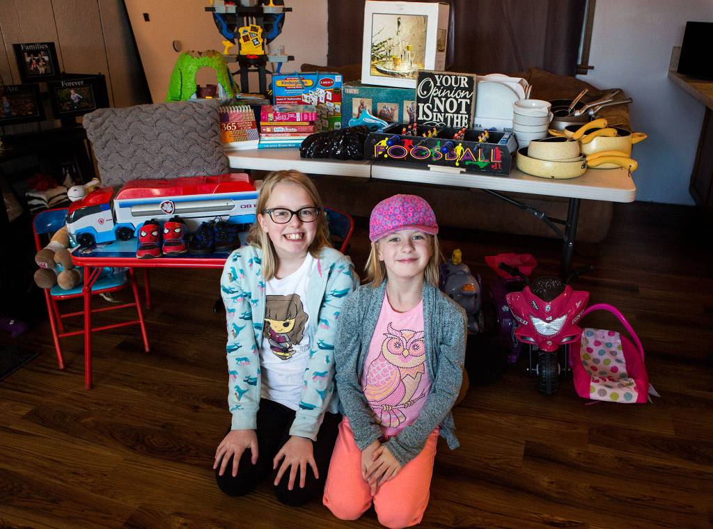 The fourth-grade Riverview Elementary sisters approached the district last fall with an idea to raise money through a community garage sale. They started gathering items from neighbors and friends in October. In the past months, sneakers, toy sets, games, books, kitchenware, bedding, stuffed animals, clothes and more have filled the family’s garage.