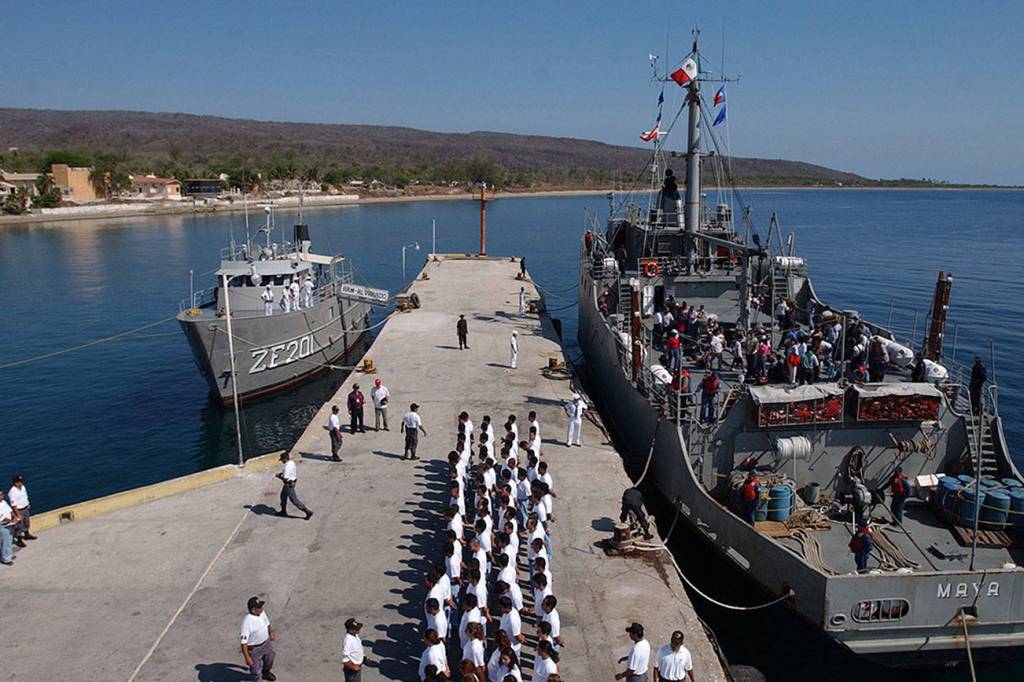 Inmates line up on the pier after arriving at the Islas Marias federal prison island, located 90 miles south of Mazatlan, Mexico, on May 12, 2005. President Andres Manuel Lopez Obrador said on Monday that he will close the famed island penal colony and will have it converted into a cultural and environmental education center. (AP Photo/Eduardo Verdugo, File)