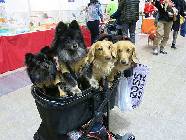 At a fashion show during Yokohama’s Pet Expo 2019 last month, owners paraded their pets in an array of human clothes. There was a dog in green camouflage matching its owners’, and another in a knitted hat and cardigan; there were spaniels in black jackets and jeans, dogs looking cool in leather jackets and sunglasses, and even four canines in scout uniforms.
