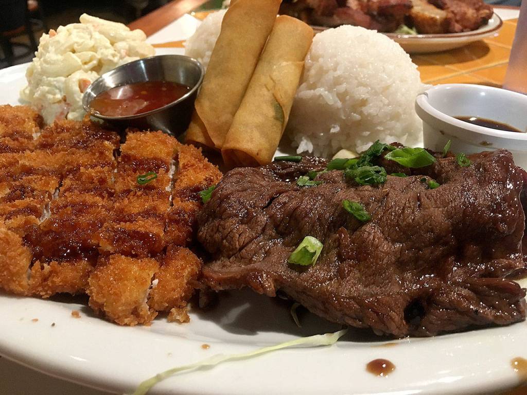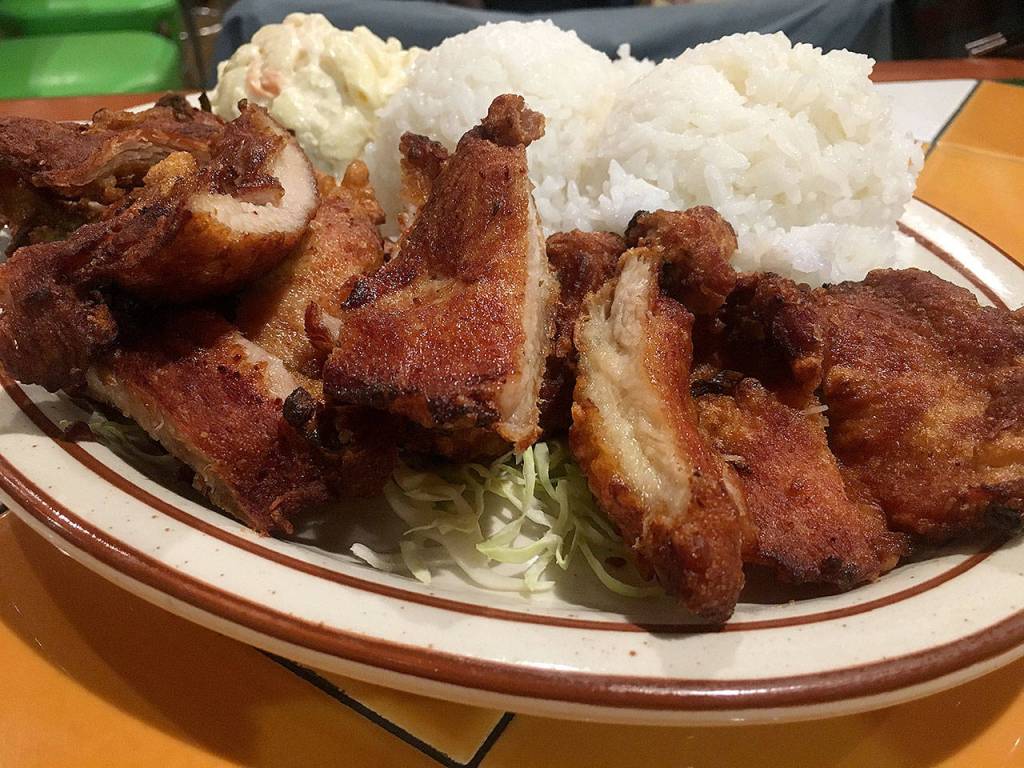 The main entrees come with rice and macaroni salad — a Hawaiian staple side.