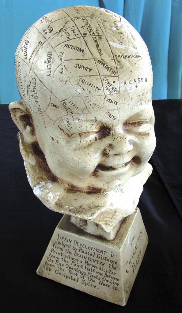 A baby’s head called “The Character Baby,” rarely seen, was offered at a Canadian shop, Peter Frampton Antiques & Interiors, for about $250. It pictures the 5-month-old son of the artist, George Ricci, who made phrenology heads from 1915 to 1921.
