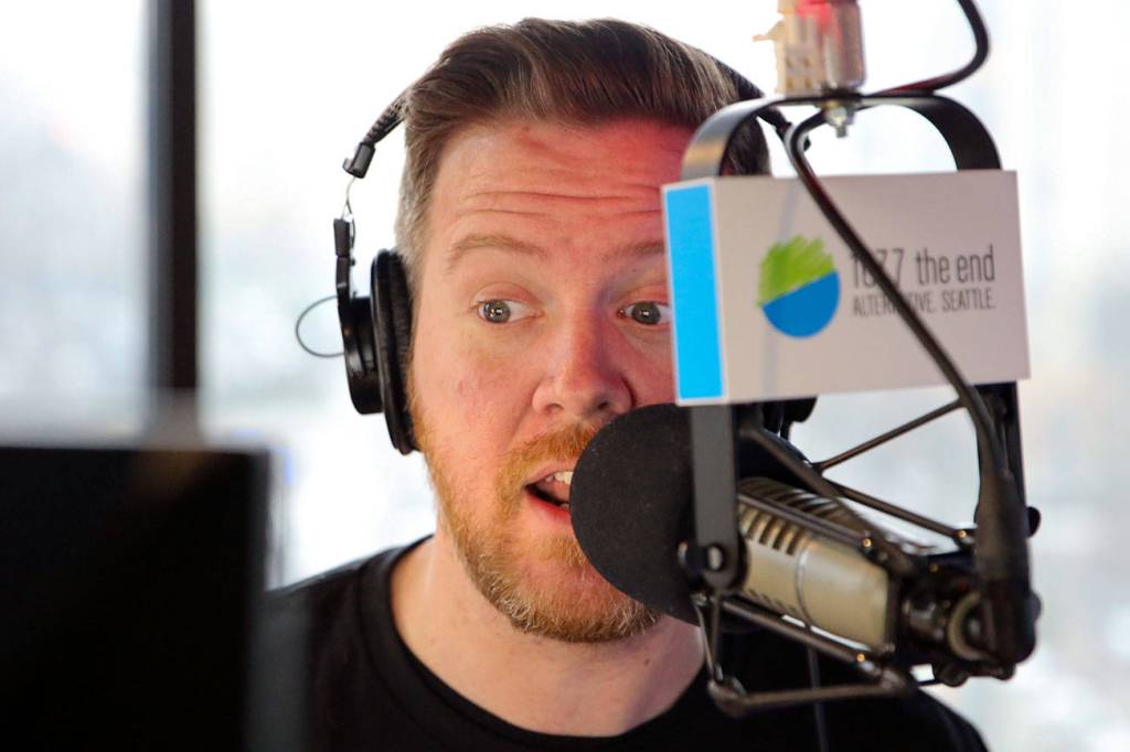 Gregr is on the air for 107.7 The End every weekday, from 6 to 10 a.m. It means an early wakeup and commute for him from his Snohomish home. (Kevin Clark / The Herald)