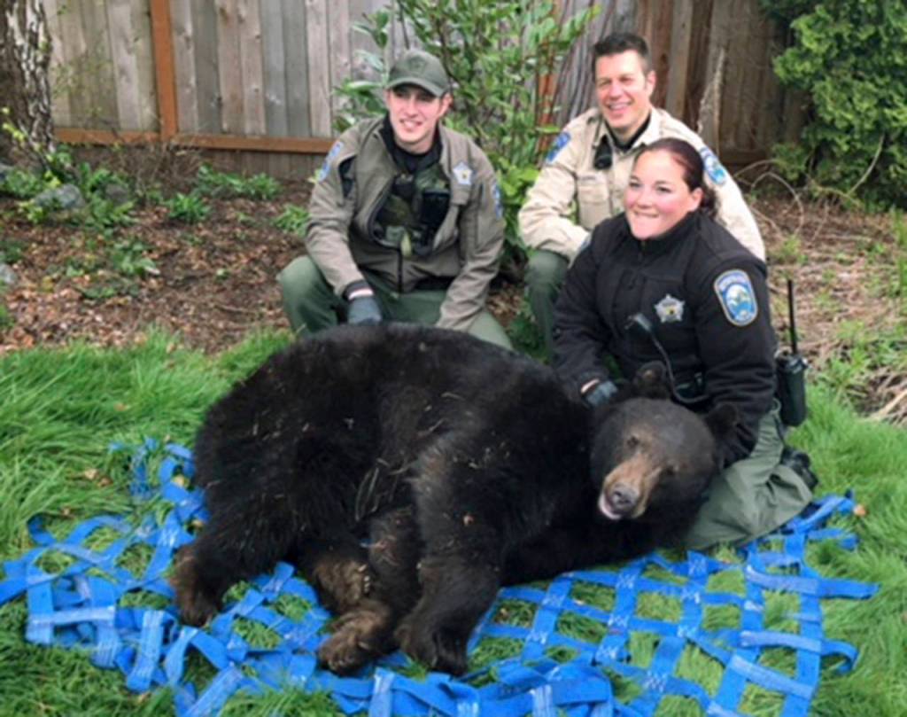 Monroe police had received a report of a black bear sitting in a grassy area near Sawyer Street SE and 171st Avenue SE. Officers followed it until Jorg and others from the state Department of Fish & Wildlife could arrive.