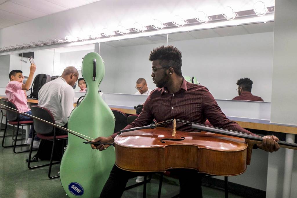 Later, his teacher randomly distributed the instruments to the children. He gave Adams the cello and Adams began to test the strings. “I was like, I don’t know what I’m doing. This sounds terrible,’ ” he said. “I didn’t know what was in tune and what was out of tune.”