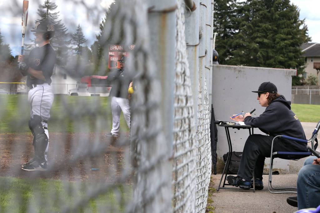 Patchett can be found at nearly every single Lake Stevens game, stationed at a table just outside the fence next to the Vikings’ dugout. With a recorder in hand — along with a very thorough scorebook and two notebooks filled with additional stats and information — he delivers an incredibly seasoned play-by-play audio broadcast of the game that he later posts online to YouTube.