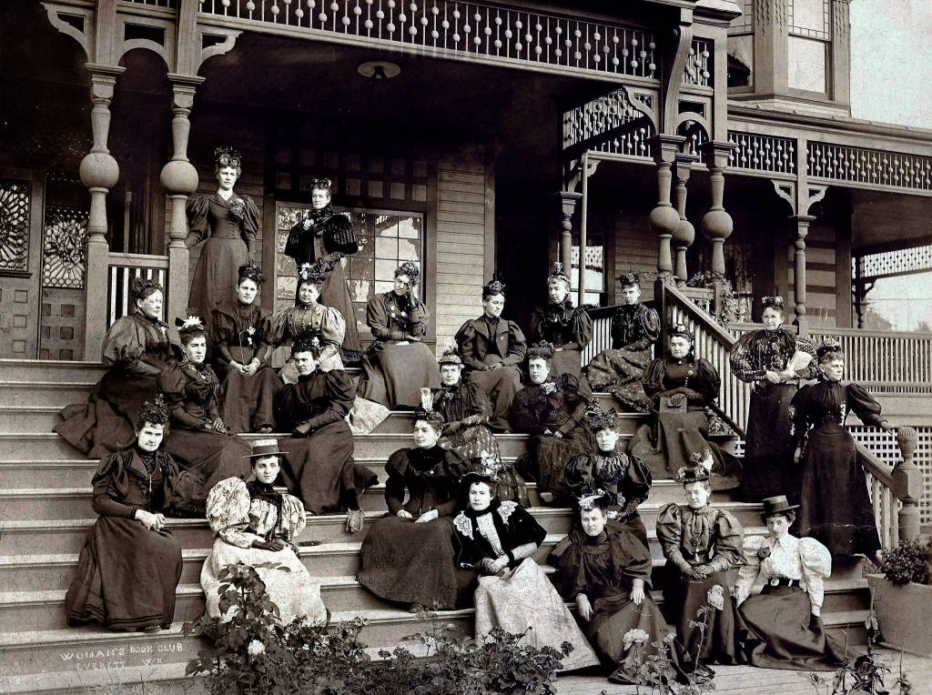 It’s like something you’d see in a museum. In long, fancy dresses, original members of the Woman’s Book Club of Everett pose properly on the steps of the Hotel Monte Cristo.