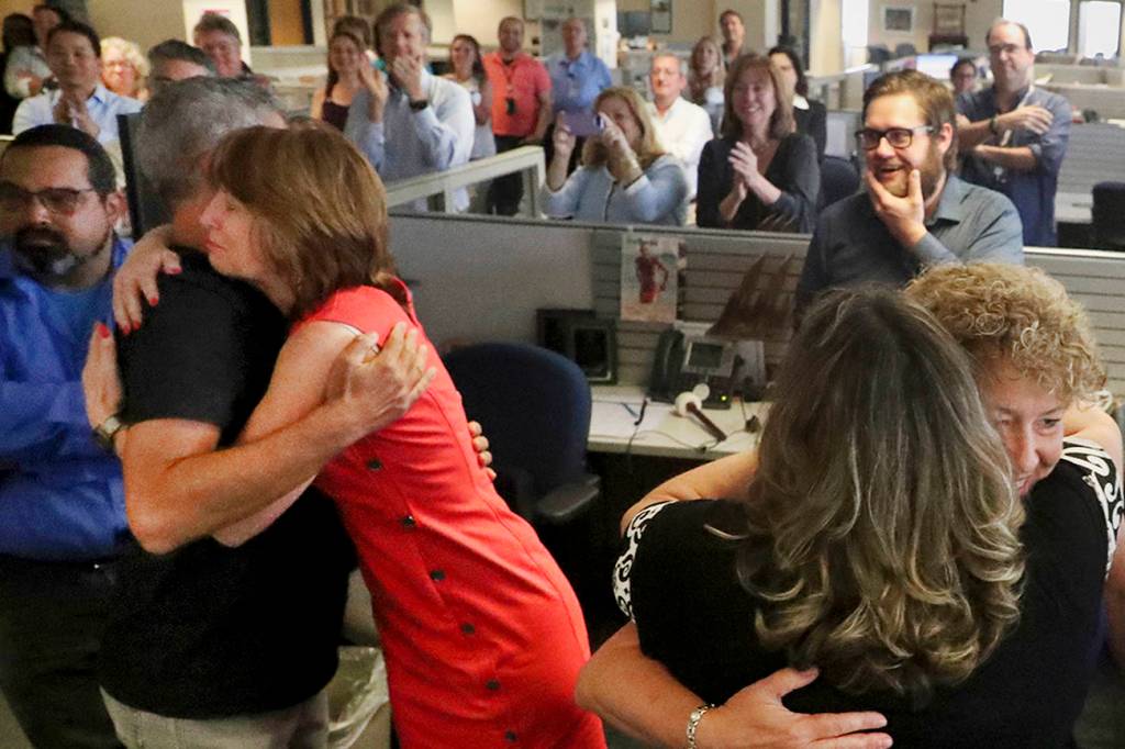 After the Pulitzer announcement, the newsroom observed a moment of silence for the victims.