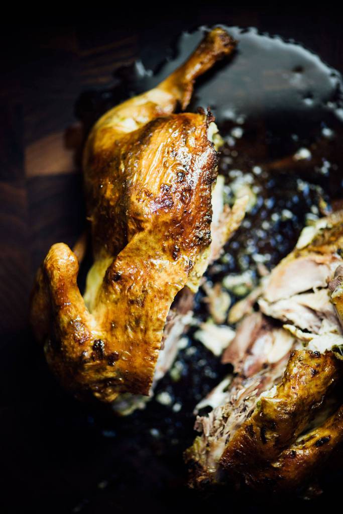 I love that Sharma’s green chutney is the result of cleaning out the greenery from his fridge. Then stuffing it under the skin of a roast chicken? Genius. Makes 6 servings