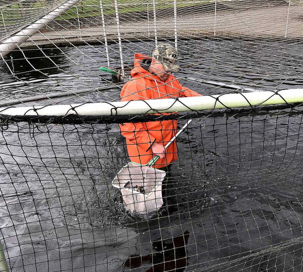 ARLINGTON — Earlier this month, a group of volunteers gathered at a state hatchery in Arlington to clip the adipose fins on 600 trout that will be planted in Skagit County’s Pass Lake as part of a study.