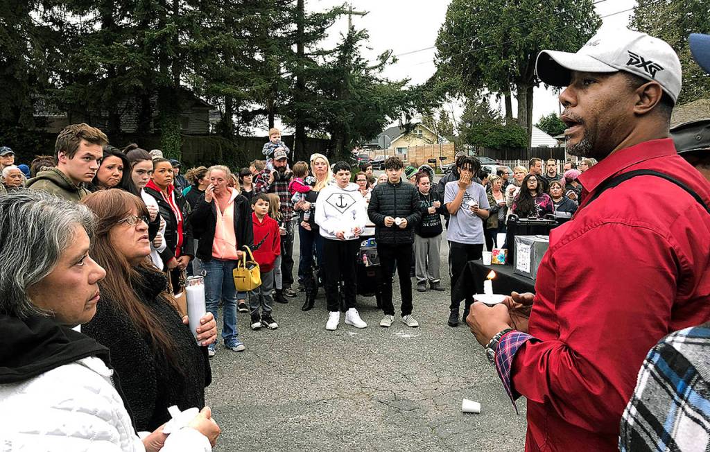 Victor Pierce Sr., who leads a Christian ministry, spoke first at the vigil.