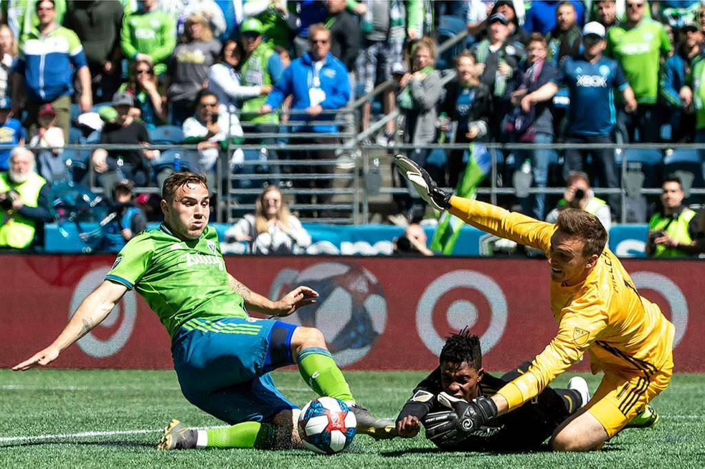 LAFC dominated possession (73 to 27 percent), and out-shot the Sounders, 21-4. LAFC had a wide-open chance for the go-ahead goal in the 48th minute when Christian Ramirez was standing alone in front of the left post, just a yard in front of the net, but his shot off his right foot flew over the top.