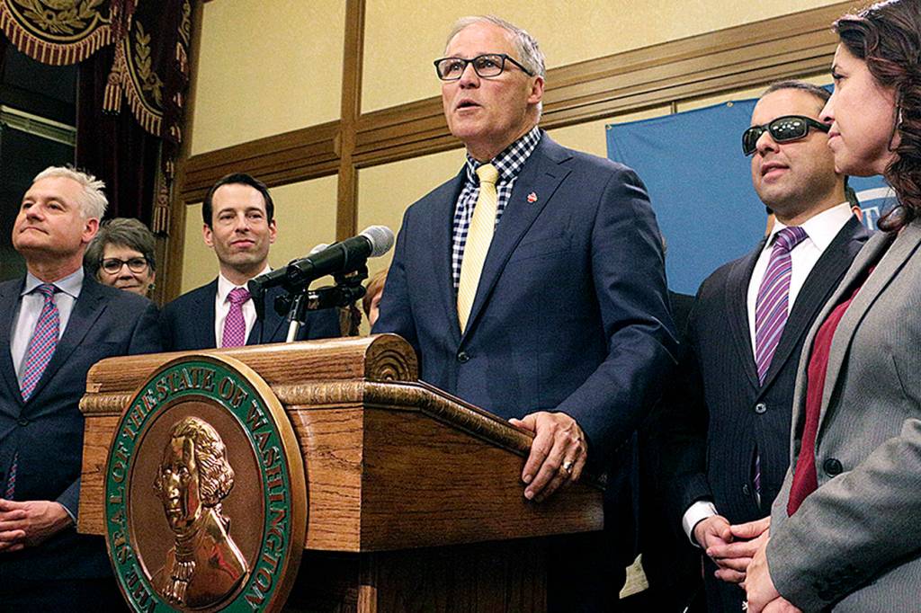 Inslee, surrounded by Democratic legislators at a post-Sine Die news conference early Monday, captured everyone’s sentiment when he said, “There is a time to be humble. This is not one of them.”