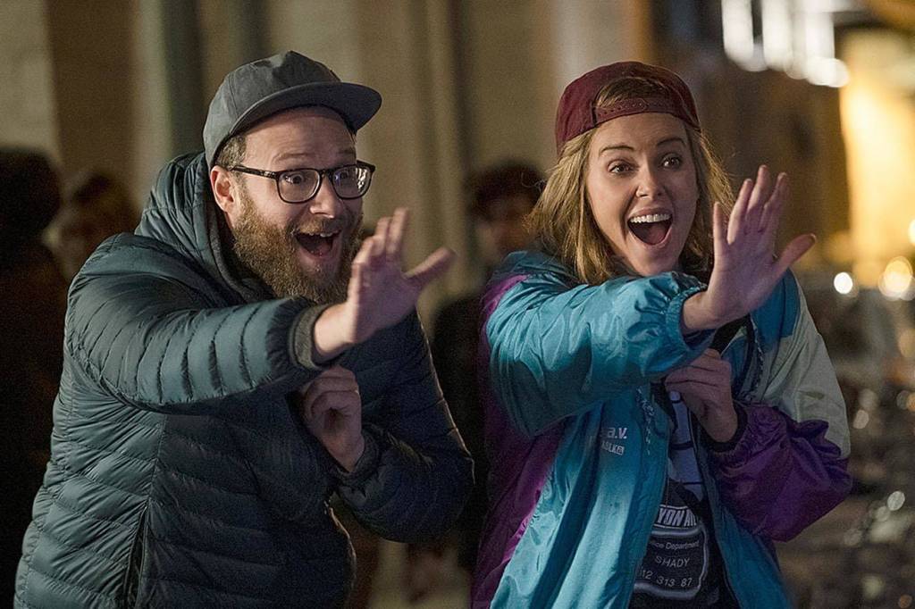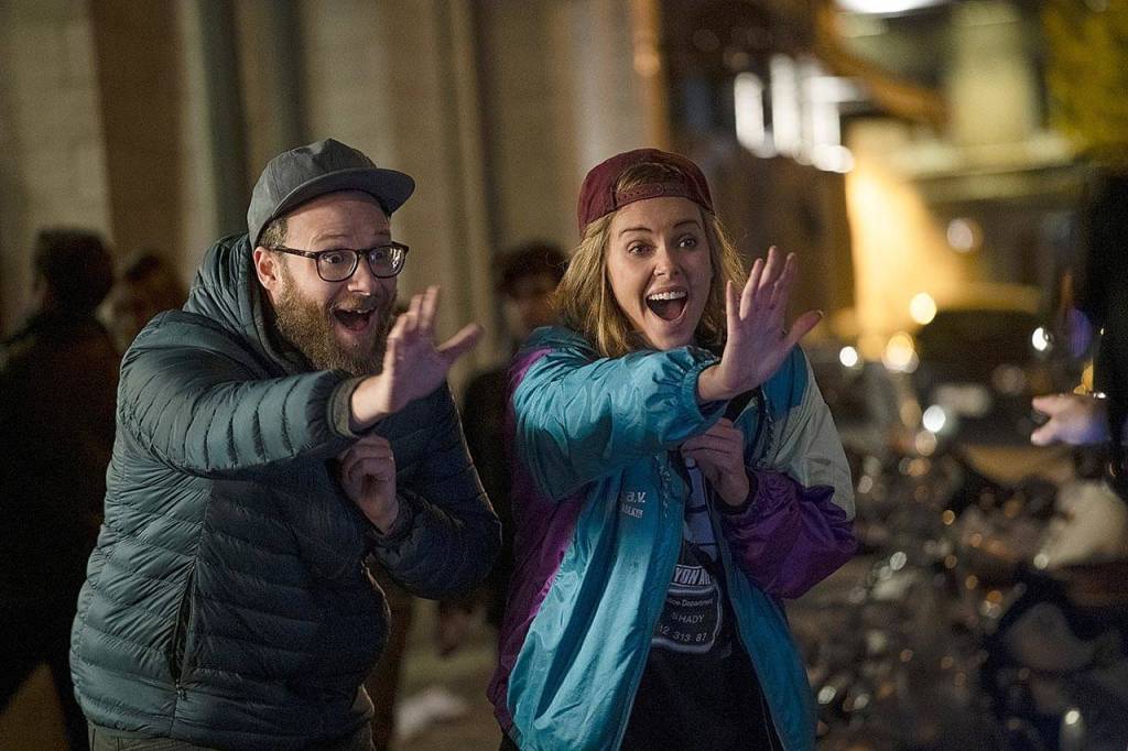 Charlize Theron and Seth Rogen play an unlikely couple (she’s the secretary of state, he’s Seth Rogen) in “Long Shot.” (Lion’s Gate Entertainment)
