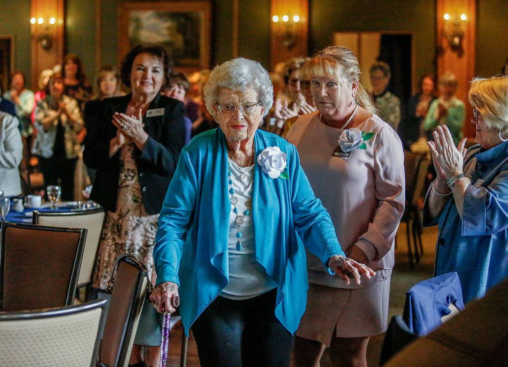 With their mother Thursday were Burgess’ daughters Mj Benner, of Vancouver, Washington, and Jan Fortier, of Snohomish. Both were part of Assisteens, a youth auxiliary of the Assistance League. Benner was the teen group’s president while her mom was leader of Assistance League of Everett.
