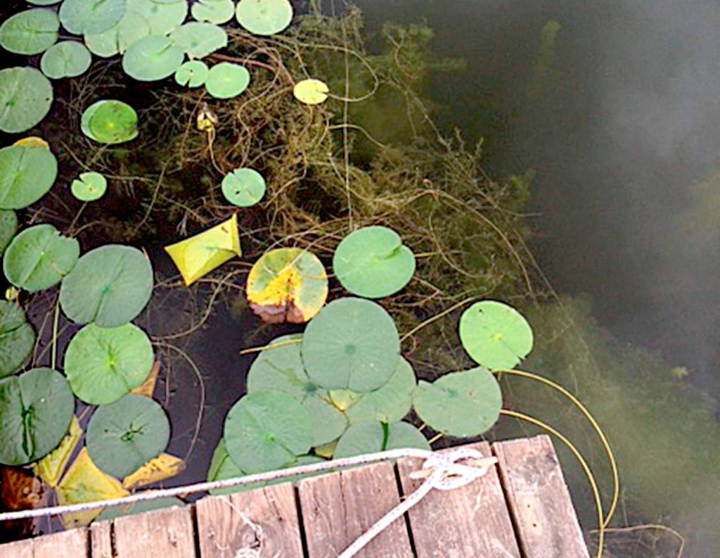 Folks living along the south shore of Lake Ballinger began noticing Eurasian milfoil in the fall of 2015. Two years later, the intruder had spread dramatically, creating dense weedy mats that cover much of the shore.