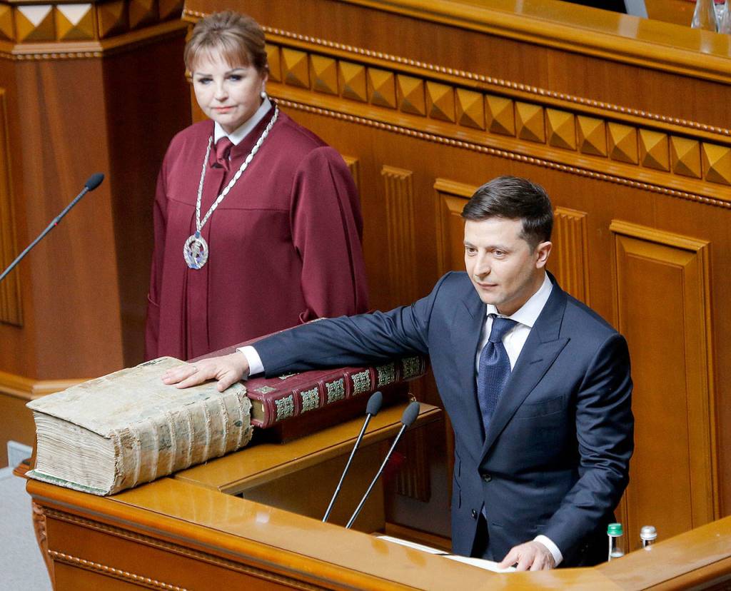 KIEV, Ukraine — Emboldened by his stunning victory last month, Ukrainian TV star Volodymyr Zelenskiy moved swiftly Monday to dissolve the country’s parliament, moments after he was sworn in as the country’s new president.