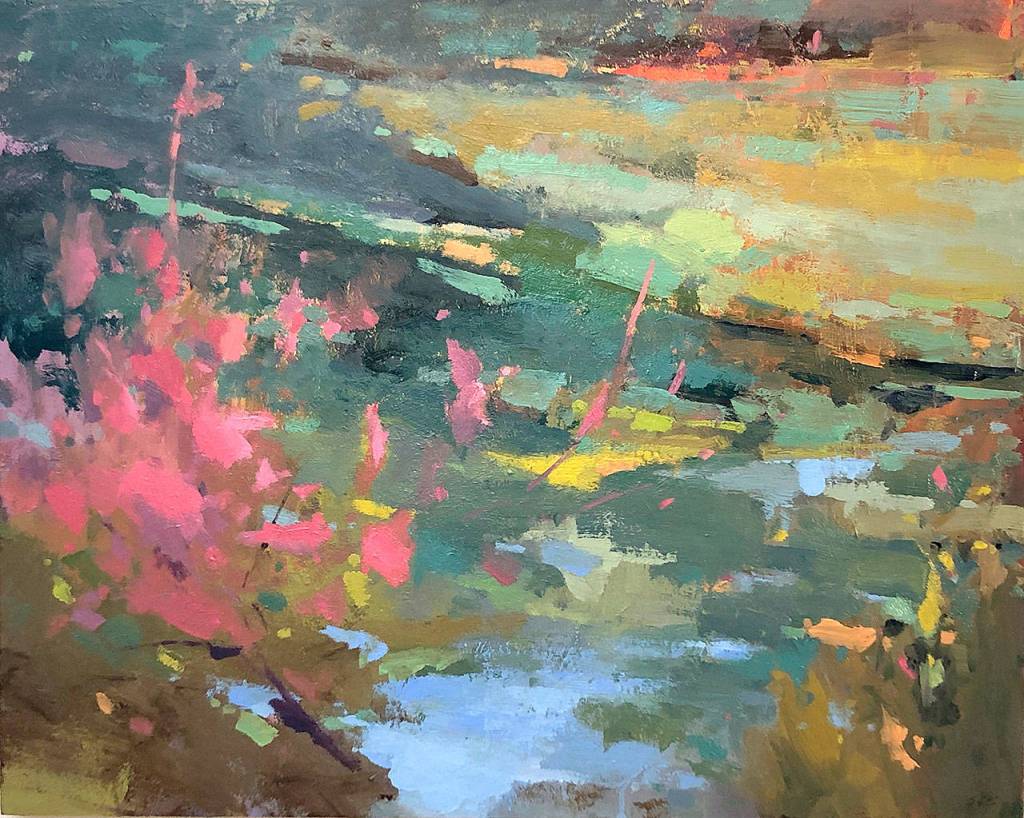 Gellatly’s colorful wetlands and Pierce’s sweeping vistas are featured in “Interpretive Landscapes,” on display through June 10 at Cole Gallery in Edmonds.