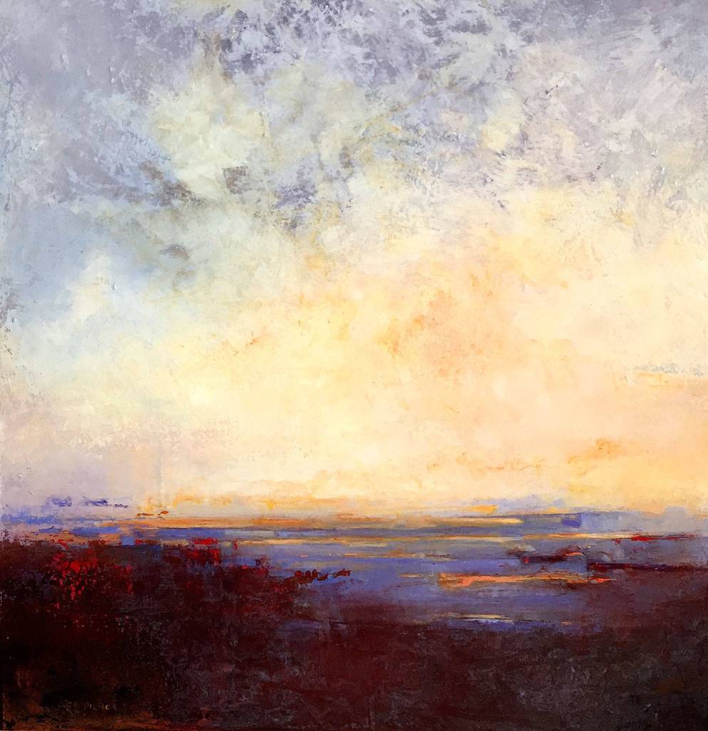 Many of her acrylic paintings were inspired by views from her Kirkland home overlooking Lake Washington. She doesn’t capture those moments with a camera. She absorbs what she sees, contemplates how it makes her feel and then channels those emotions into her work.