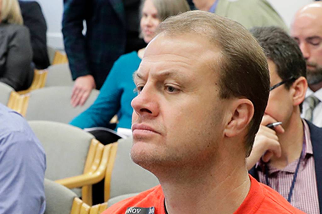In this Jan. 10 photo, anti-tax activist Tim Eyman (right) attends the Associated Press Legislative Preview at the Capitol in Olympia. (AP Photo/Ted S. Warren)