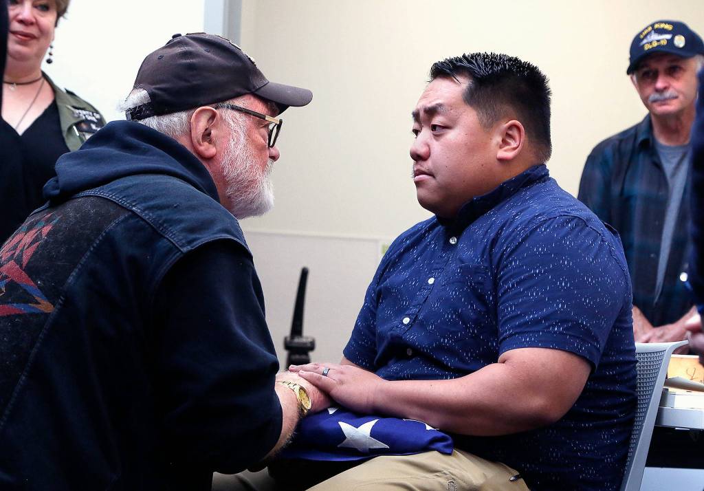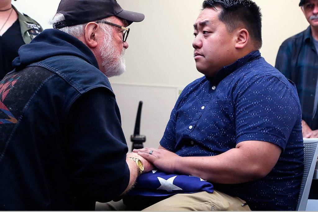Tuesday’s ceremonial flag-folding and presentation was unofficial — but meaningful all the same. Hydee Hernandez, who learned about the Hmong soldier because she works with Vang, helped organize the presentation. She volunteers at the Hero’s Cafe, a monthly gathering for veterans at the Verdant Community Wellness Center in Lynnwood, and helps with the Honor Flight Network and other groups serving veterans.