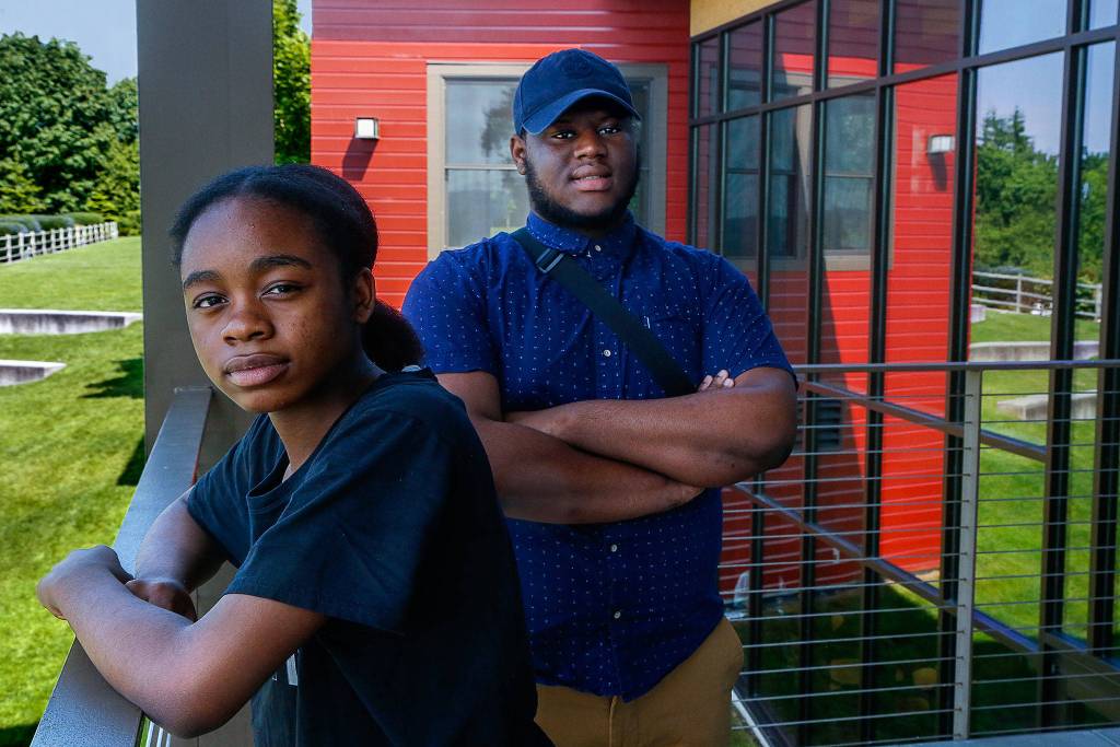 Glenda Wabaluku, 14 (left), and Abdulkarim Sankareh, 18, pay a visit to Rosehill Community Center in Mukilteo on Wednesday. They will join 16 other local teens involved in a grassroots mentoring program to put on a program Sunday at the center called “We Are Culture.” (Dan Bates / The Herald)