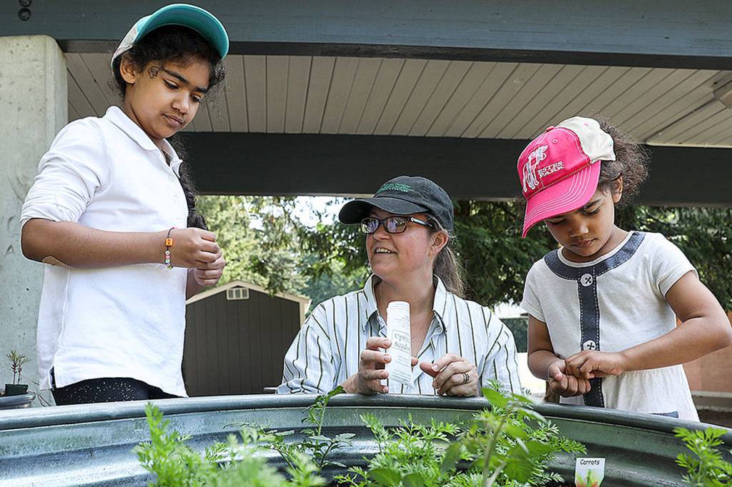 LYNNWOOD — By mid-May the edible garden at College Place Elementary School was already bursting with green. Pea plants’ stringy tendrils were reaching out for a nearby trestle. Onion stalks towered over the leafy tops of carrots and heads of lettuce dotted the soil.