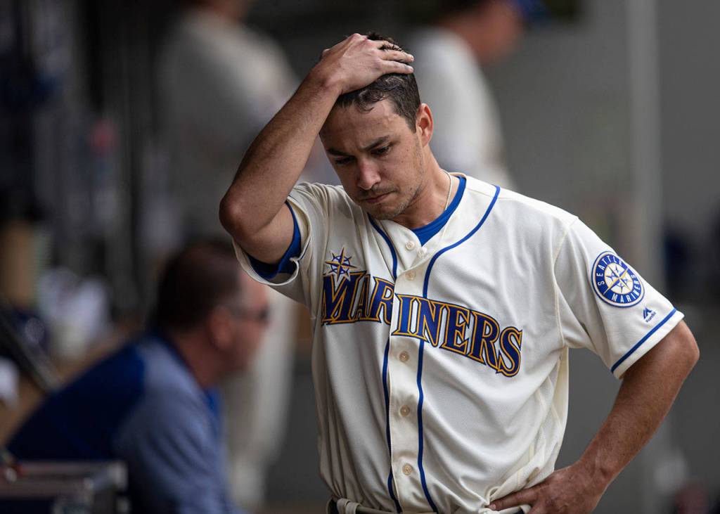 On Sunday, he was tagged for 10 runs on nine hits in 4 2/3 innings. He was the first pitcher in Mariners history to win five games before May, but is 0-6 with a 7.79 ERA in his past seven starts.