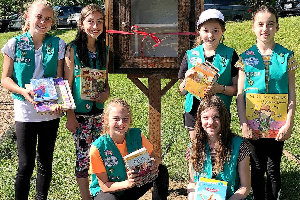 There’s now a little library in Pilchuck Park, at 169 Cypress Ave., Snohomish. Girl Scout troop 44528 installed the cabinet filled with free books last week. It was part of their final project to earn the Bronze Award, the highest honor a Girl Scout junior can achieve. They spent more than 20 hours on the project.