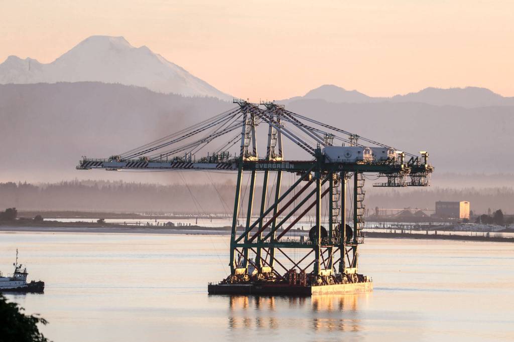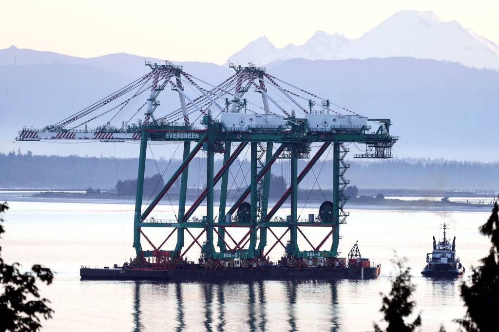 The cranes were due to dock last week, but the tug and its cargo encountered 60 mph winds and 12-foot seas north of San Francisco last week, delaying their arrival in Everett.