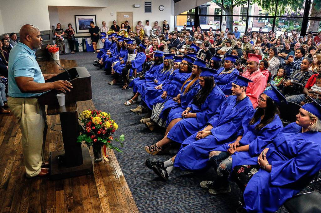 To the cheers of families, friends and mentors, they were among 24 teens and young adults who walked in caps and gowns Monday night at Everett Community College’s Henry M. Jackson Conference Center. Each with a story of academic stumbles and successes, they were celebrated at the WorkSource Youth Center graduation.