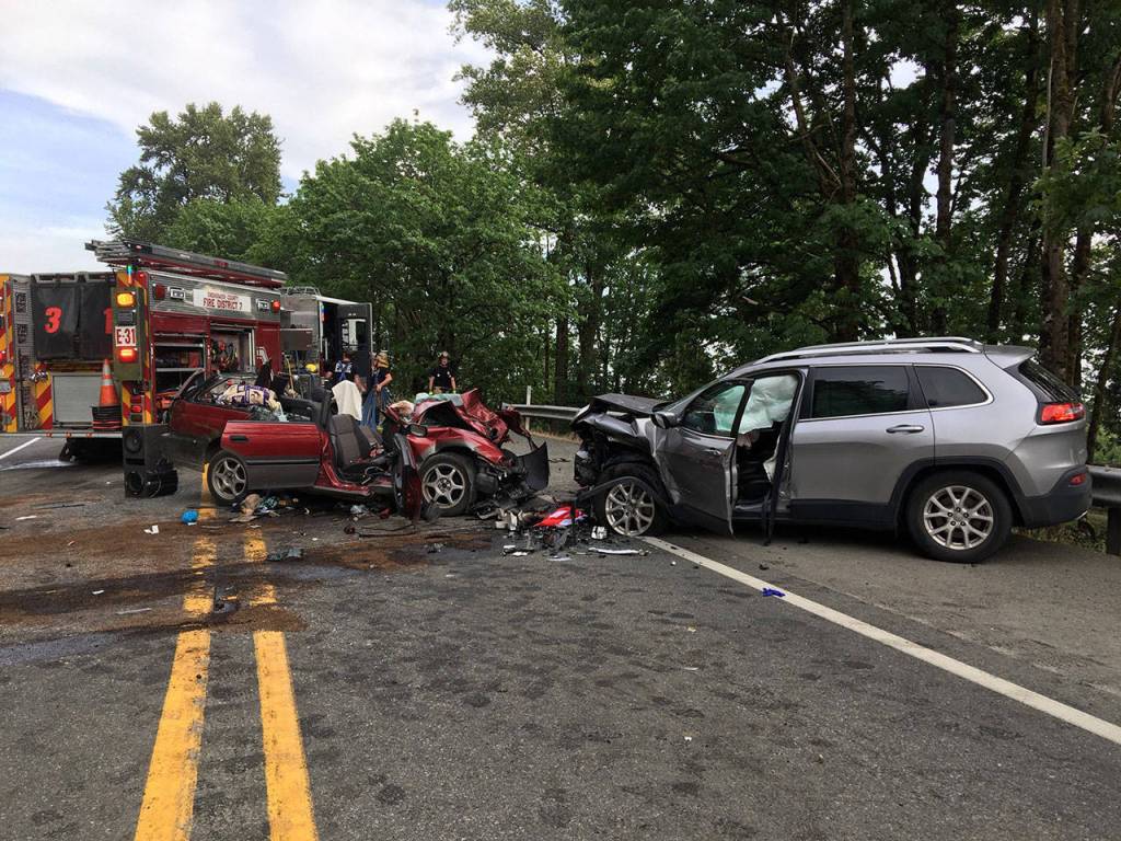 The man suspected of causing the crash had to be cut out of his car. He was taken to Providence Regional Medical Center Everett.
