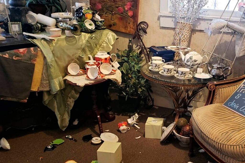 Video posted online of a liquor store in Ridgecrest showed the aisles filled with broken wine and liquor bottles, knocked down boxes and other groceries strewn on the floor. Flames were seen shooting out of one home in the community.
