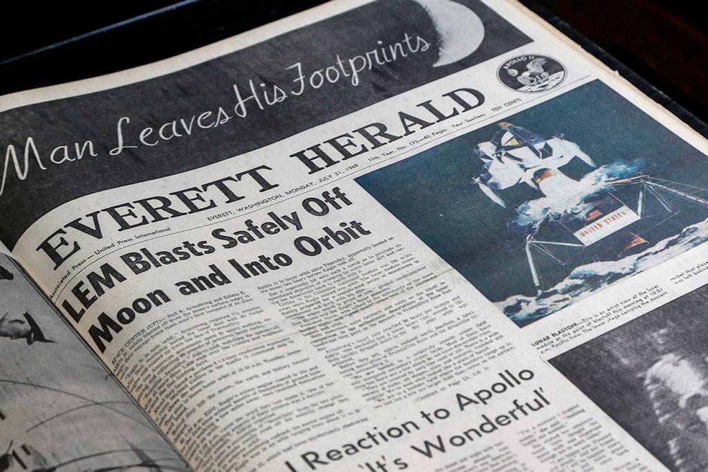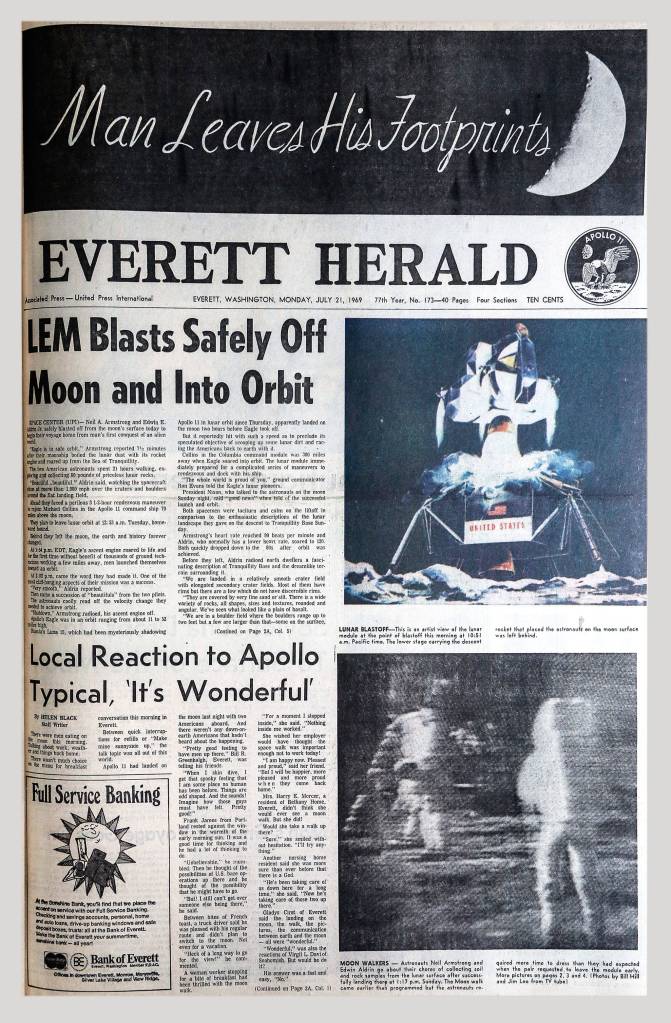 It wasn’t until Monday afternoon that The Herald reported moon news again, and not only had they landed and walked around, Neal Armstrong and Buzz Aldrin had already lifted off the surface and were headed to a rendezvous for the flight home.