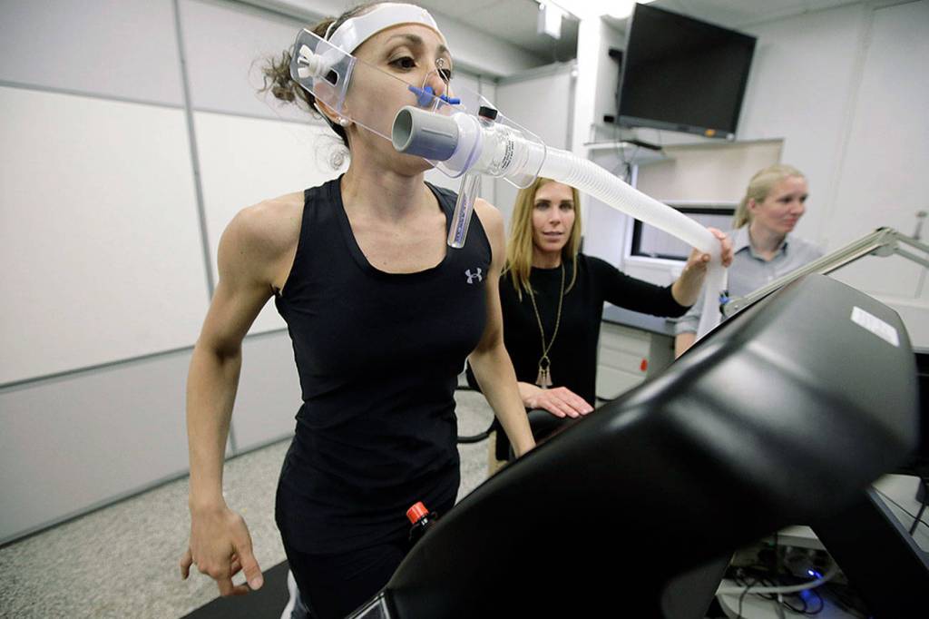In a small basement office at this Army base in Natick, Massachusetts, McClung and Julie Hughes, a research physiologist, are setting up a treadmill that’s linked to a nearby computer. They plan to have the women use a mask and breathing apparatus to calculate each participant’s vo2 Max score, a key fitness indicator. The score measures how many millimeters of oxygen used per kilogram of body weight per minute; in other words, how much oxygen is being used at a person’s peak exercise rate.